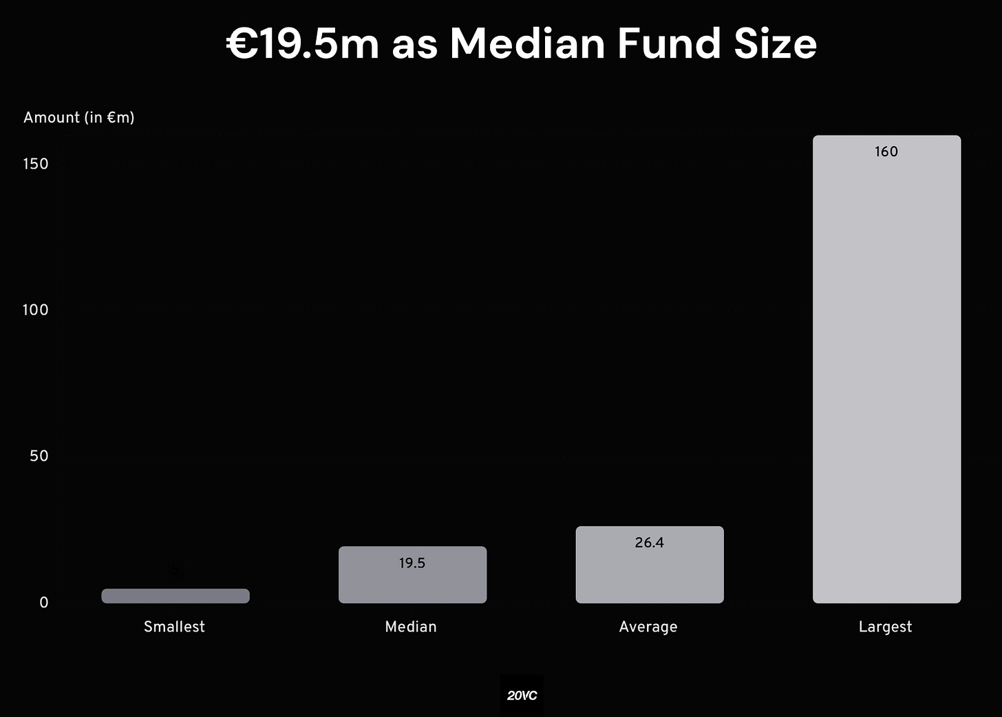 The study also shows a median fund size of €19.5 million among European micro funds, with an average of €26.4 million, indicating a right skew driven by a limited number of larger vehicles. The smallest fund stands at €5 million, while the largest reaches €160 million, illustrating the breadth within the segment despite its micro fund label.