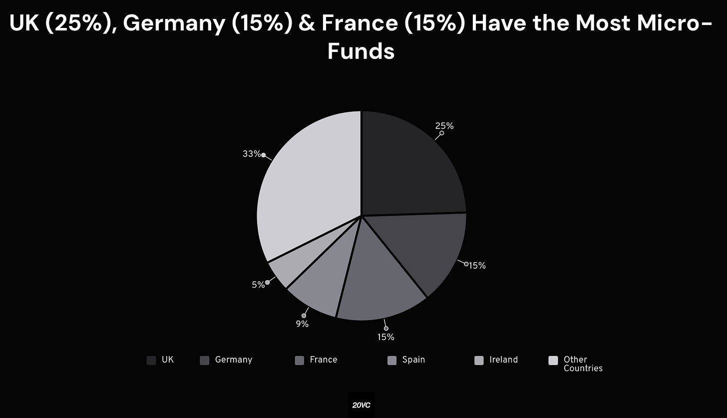 The UK accounts for 25 percent of micro funds, followed by Germany and France at 15 percent each, while Spain represents 9 percent and Ireland 5 percent. The remaining 33 percent is distributed across other European markets, indicating a widening footprint beyond traditional hubs. Together, the data points to a maturing segment combining concentrated national strength with an increasingly continental investment scope.