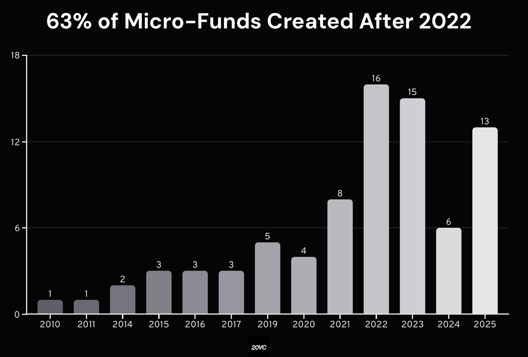 According to the data, 63 percent of micro funds were launched after 2022, with 16 new vehicles in 2022, 15 in 2023, and 13 in 2025 alone. This compares with much lower annual figures throughout the 2010s, when launches typically ranged between one and five per year. The surge reflects a structural shift in the European venture landscape, with smaller, specialized managers emerging to address early stage capital gaps and more focused sector strategies.