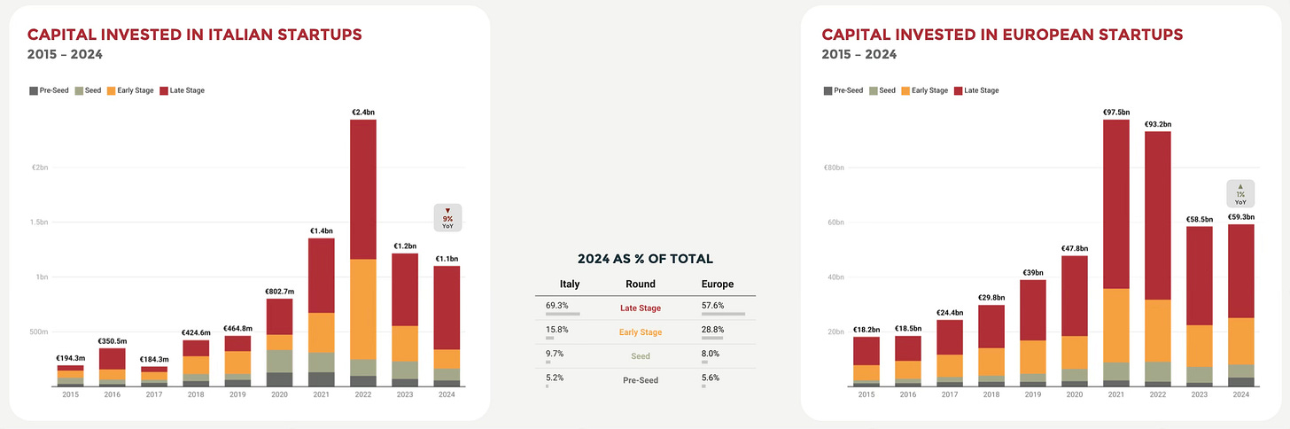 Coming back to us, I’ve been reading a very interesting report this week, the “State of Italian VC - Tracing evolution and market opportunities” from P101. The report is a comprehensive analysis on the venture capital (VC) landscape in Italy, providing an in-depth look at the investment patterns, trends and growth dynamics within the Italian VC sector, tracing its developments over the last decade, with a focus on 2024. Here my main takeaways: